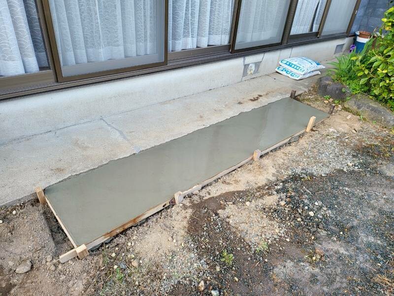 コンクリートの乾燥を待ってから、テラス屋根を設置。屋根の高さや角度を調整し、雨が吹き込みにくく洗濯物が干しやすいよう工夫しました。