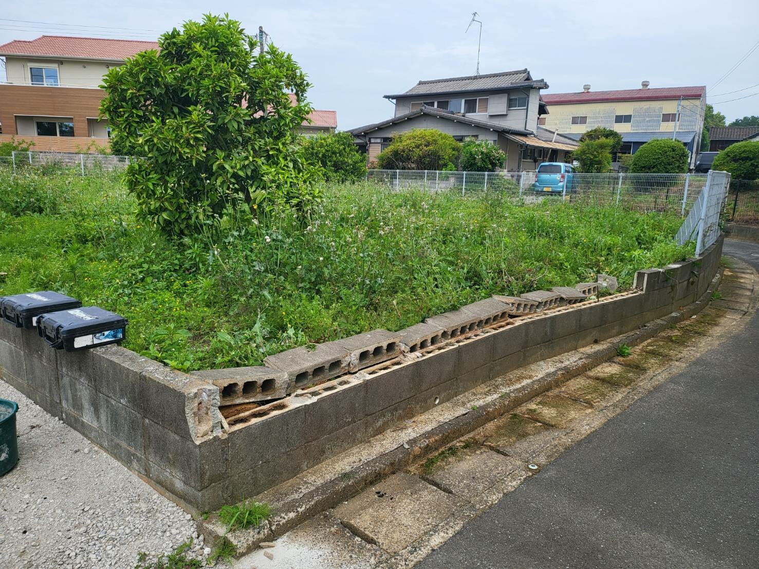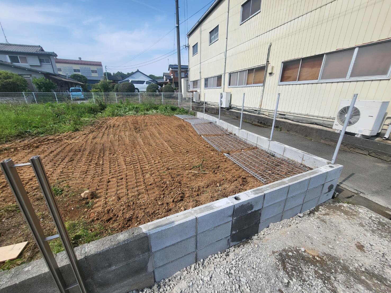 今回の工事では、敷地を囲むブロック塀の積み直しからスタートしました。既存のブロックは老朽化が進んでおり、倒壊の危険性も考えられるため、基礎からしっかり施工。特にこのブロックは土留めの役割も兼ねているため、強固な基礎作りを徹底しました💪