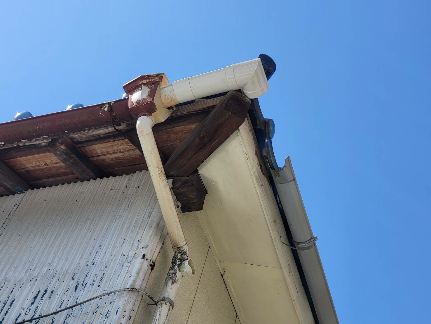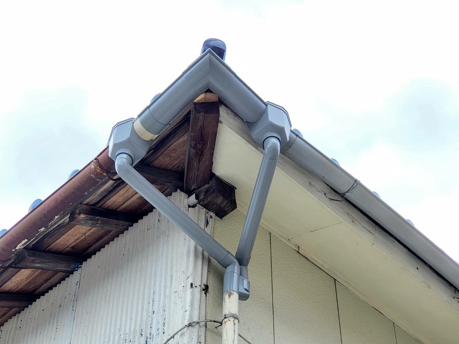 ついでに古い雨樋も一部破損していたため、あわせて修繕を実施。屋根の二階部分という高所作業でしたが、足場を組むと費用が高額になるため、株式会社AIPLANでは自社所有の高所作業車を活用。安全性を確保しながら、コストを抑えた効率的な施工を行いました✨